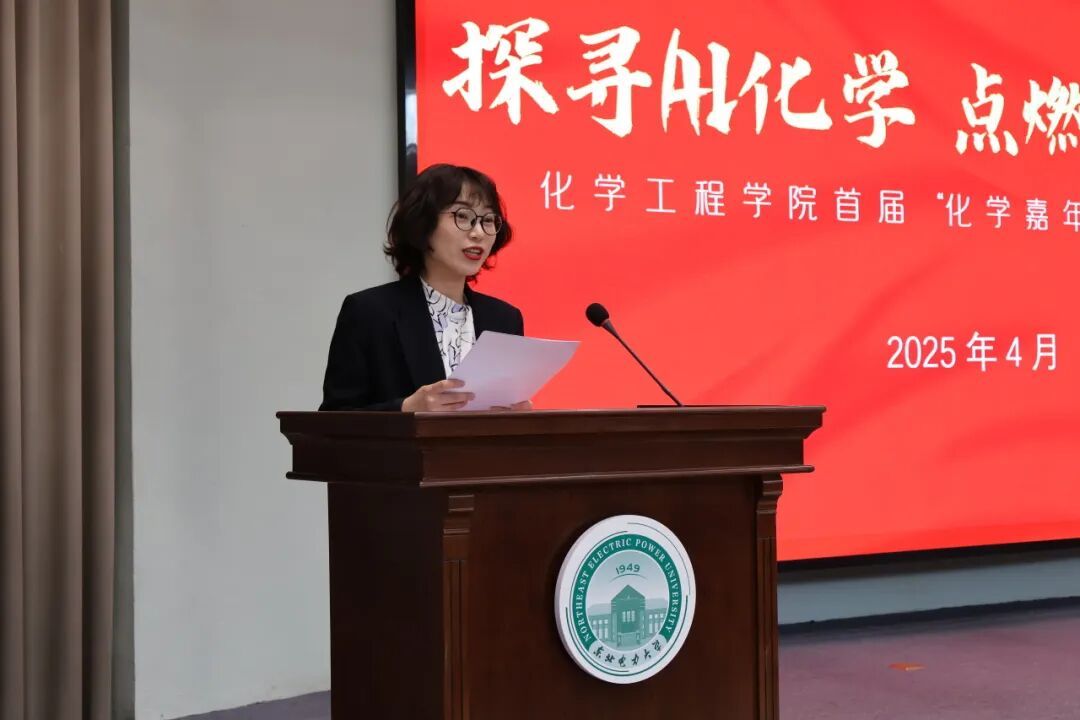 大会第二项,学院党委副书记田畅发表动员讲话,她提到,“化学嘉年华”活动作为学科创新发展的重要平台,紧密对接AI化学等前沿领域,将有效推动化学工程学科在交叉融合中实现突破,加速科研成果转化。对于创新人才培养,通过理论与实践结合的多元项目,能够激发学生创新思维,锤炼科研实践能力,希望全体学生以饱满的热情投身其中,共同探索化学科学的深邃内涵与无限可能。